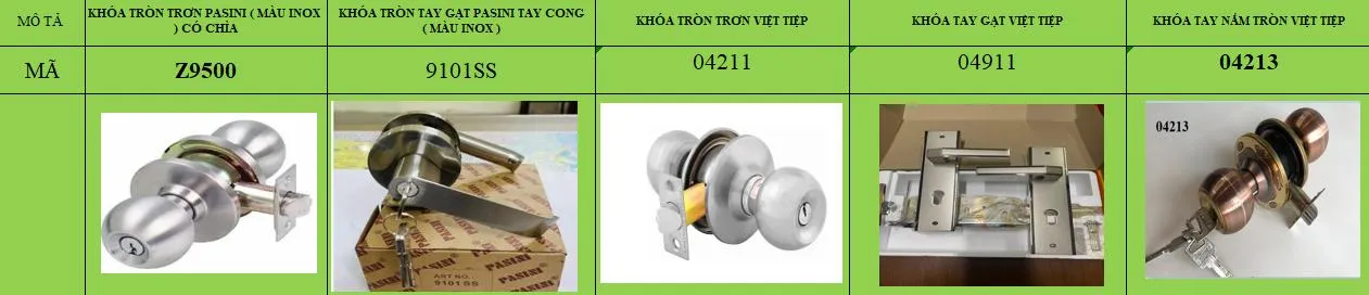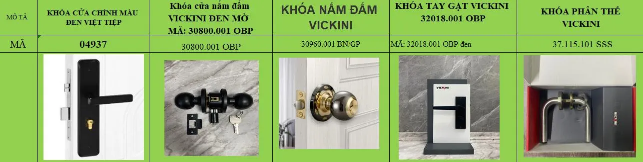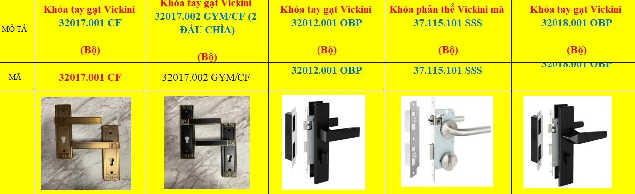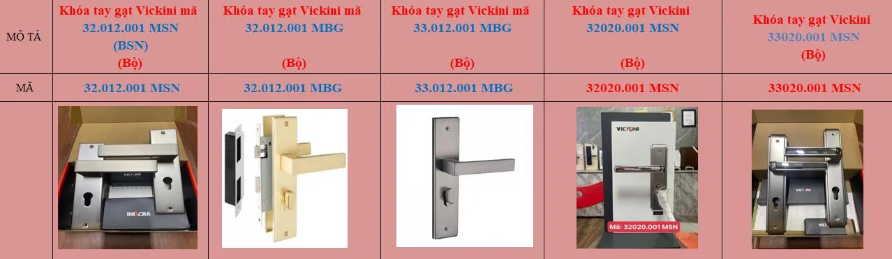 | Khóa tay gạt Vickini | Bộ | 1 | 600,000 | |