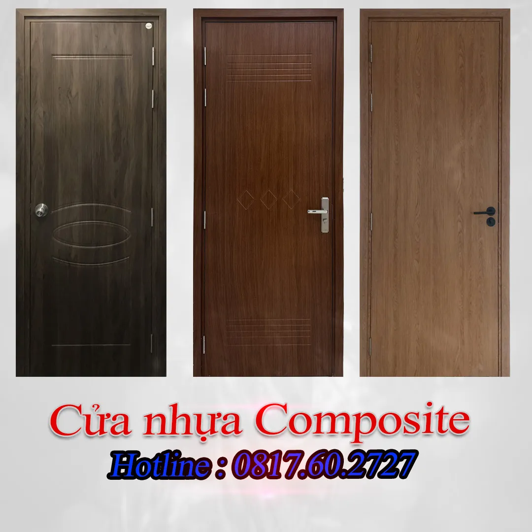 - – Cửa nhựa Composite phủ da (tấm film phủ trên bề mặt là lớp nhựa PVC giả vân gỗ).
